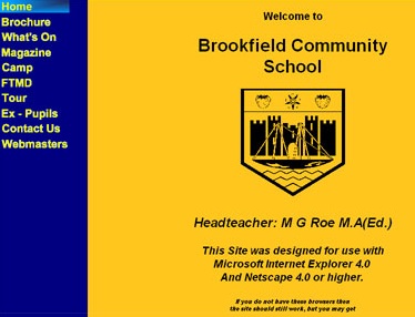 First Brookfield School website created in collaboration with another school student (purely in notepad). Entered into 'Its our school on the INTERNET competition' sponsored by the Post Office and received 'Very Highly Commendable'. Elaborate technologies included an image map!!