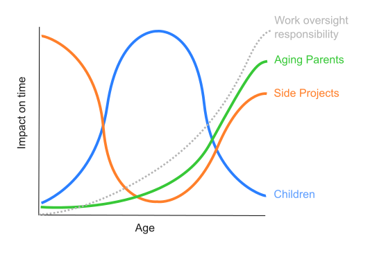 My argument here isn't to excuse my, or others, lack of side project effort as they age and progress in their career. And certainly many people, including some of my brilliant colleagues past and present, show you can do it all. The point is to be aware of these individual contexts and take best advantage of them while alleviating constraints.