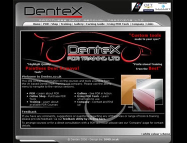 Dentex is a Paintless Dent Removal Company based in Southampton. This site was created using PHP, MySQL, Flash and adheres to the XHTML 1.0 and CSS 2.0 standards set down by the W3C.